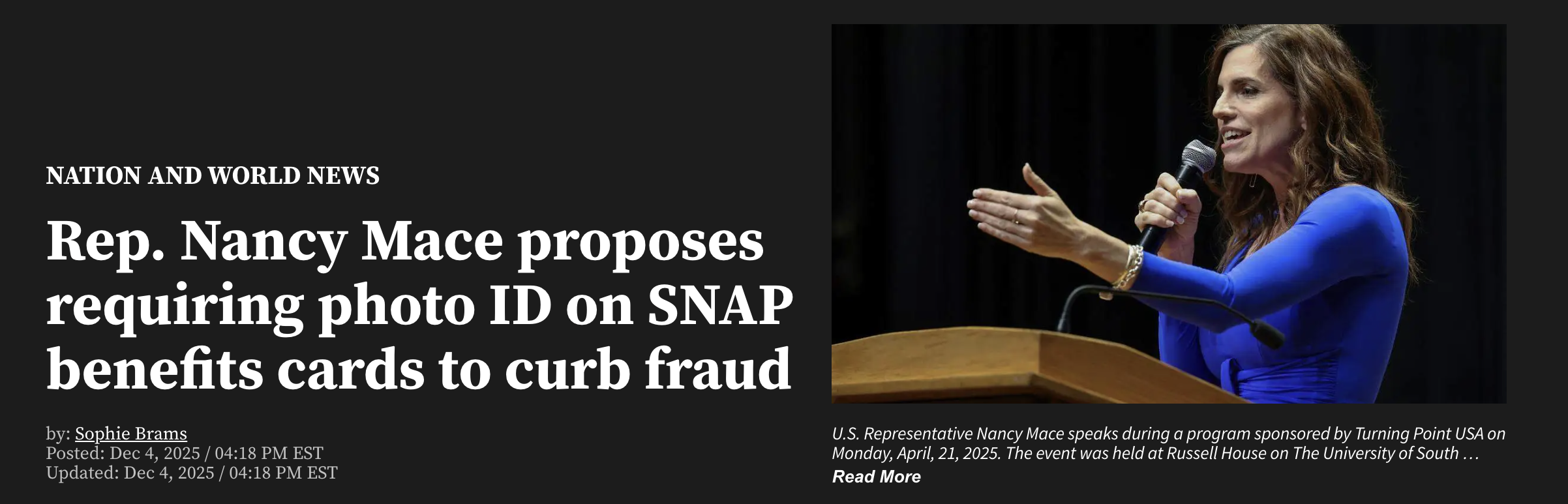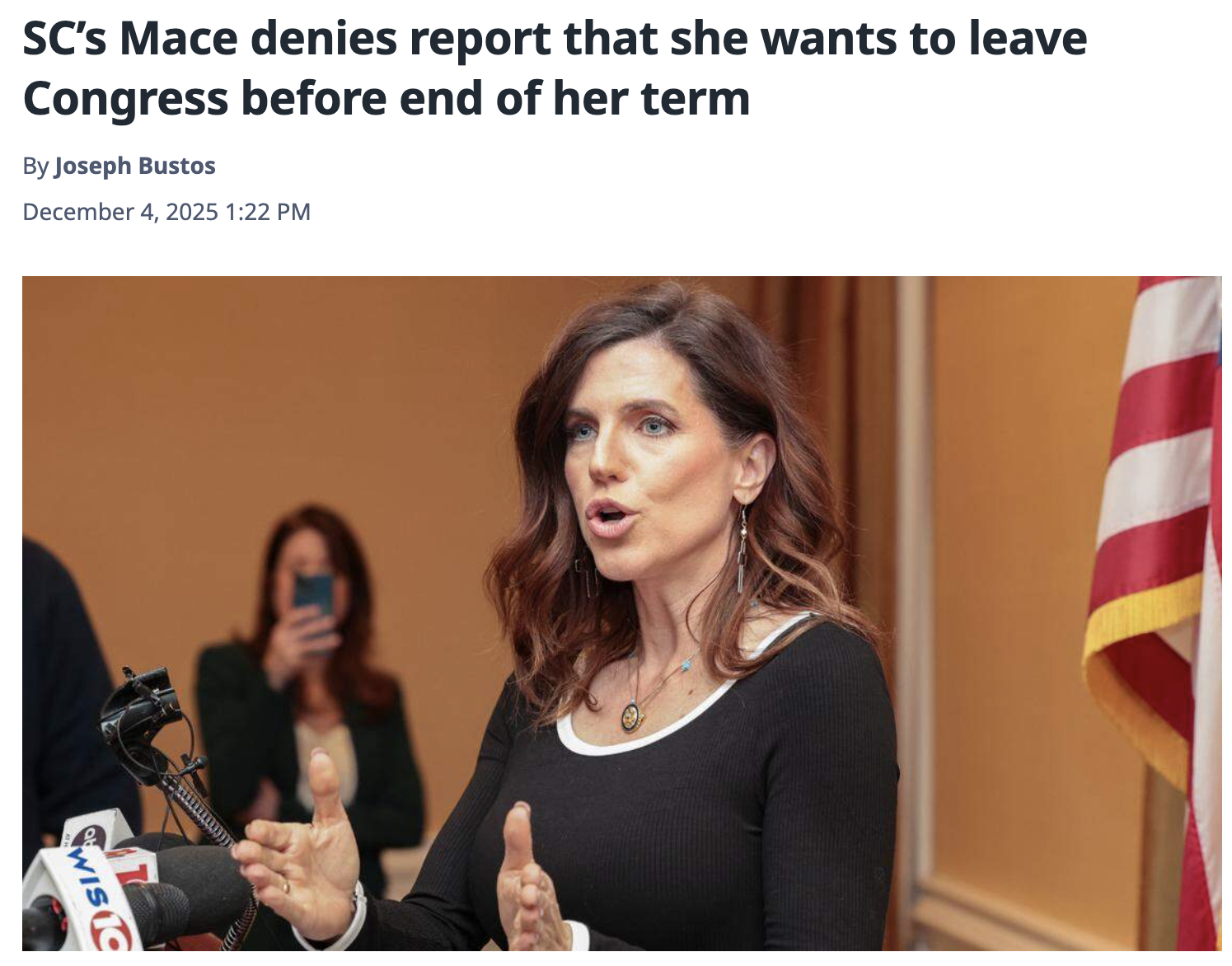 | We met with Authorized Equipment Dealers to discuss apprenticeships and the growing need for skilled trades in South Carolina. They are creating high-paying, stable careers in equipment operation, diesel mechanics, and heavy machinery—no four-year degree required. LOWCOUNTRY FIRST. | We received twice as many applications as last year for a Congressional nomination to attend one of our U.S. Service Academies! Sixty-two brave SC-01 students applied for our nomination to attend a U.S. military academy and serve our country. America is in good hands! | We spent Saturday night in Hilton Head Island for the Heritage Classic Foundation Congressional Cup. | We recently wrote an op-ed for The New York Times. You can read the full article HERE. | We spoke with Newsmax about how we have a Commander-in-Chief willing to defend the homeland without apology. You can watch the interview clip HERE. | We spoke with Fox News twice about the attack on remove the two National Guardsmen in Washington, D.C. What we’re seeing today is exactly why Biden’s disastrous, chaotic Afghanistan withdrawal still matters. That collapse empowered extremists globally and weakened America. We are still dealing with the consequences. You can watch the first interview clip HERE and the second HERE. | We held a virtual press conference to highlight our FAIR Act, which cracks down on EBT fraud and protects taxpayer dollars. Check out some of our coverage below: | ABC News 4 covered our new bill, the Tax Fairness for Abuse Survivors Act, which strengthens protections for domestic violence survivors in the tax code. You can read the full article HERE. | HERE ARE THE FACTS: Congresswoman Mace is NOT resigning. Serving South Carolina is the honor of her lifetime.
