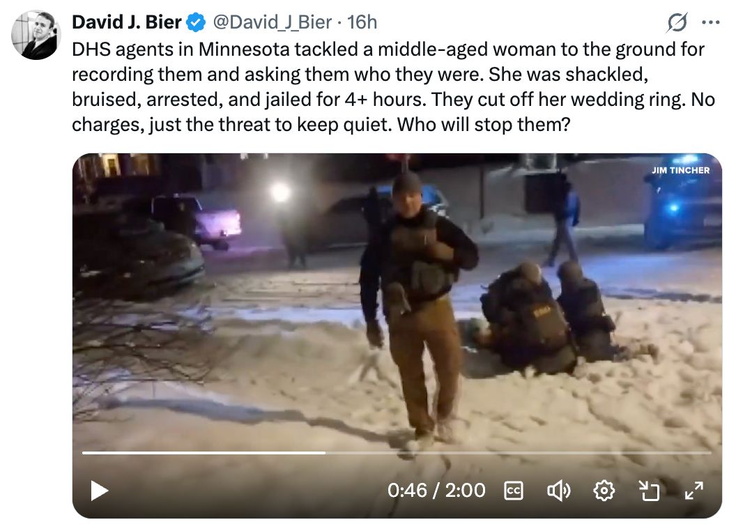 Friend — A 20 year-old US citizen and constituent of mine in Minneapolis was dragged out of a restaurant, put in a chokehold, arrested, and detained for hours before being released.