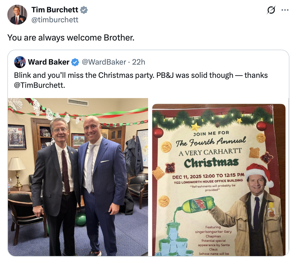 Last night, I had the honor of being invited to the White House to celebrate Christmas, and as I was walking out, the President’s Marine Corps Band was playing “Silent Night.” It officially feels like Christmas. Thank y’all for sending me here, Tim