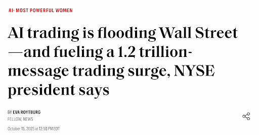 The recent article from Fortune showed how much AI has transformed the way Wall Street trades stocks. NYSE president Lynn Martin revealed that the exchange is now processing 1.2 trillion order messages per day.