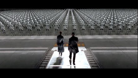 Take a look at the scene from the movie I, Robot where Will Smith (playing as Detective Del Spooner) stared down millions of robots: