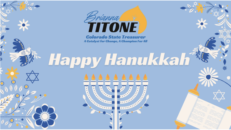|  Happy Hanukkah, folks! Today marks the first day of the eight-day celebration of light, resilience, and community among our Jewish neighbors.  As families across Colorado gather to kindle the menorah and share traditions passed down through generations, I want to extend my warmest wishes to all who are celebrating. May your homes be filled with joy, warmth, and plenty of latkes. Chag Sameach! — Brianna Follow Brianna Online:   Paid for by Brianna for Treasurer. Registered Agent Brianna Titone. |