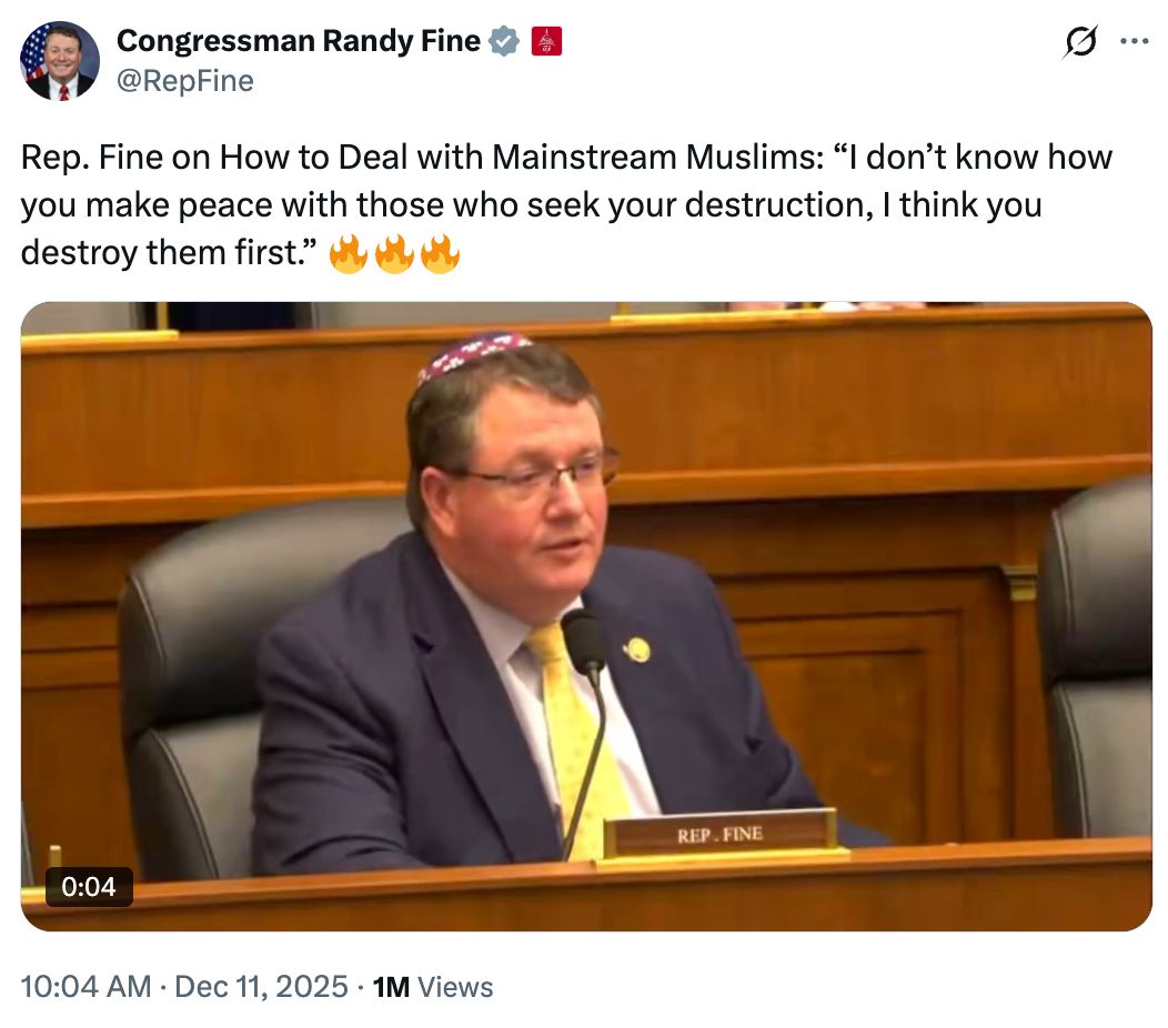 Far-right GOP Congressman Randy Fine really said this. And he was so proud of it that he tweeted it out, too.