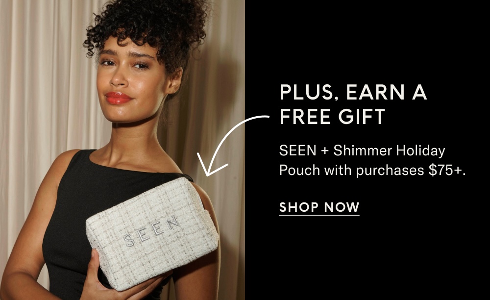 Terms & Conditions: Free SEEN Shimmer Holiday Pouch automatically added to all orders $75+ on