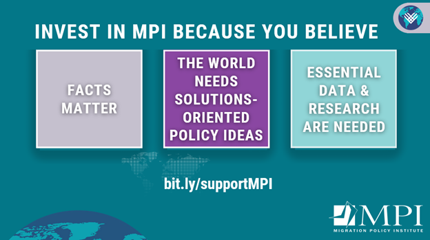 Dear Friend, As we are poised to enter our 25th anniversary year, we want to begin where it matters most: with our thanks to you. Your engagement has made useful the data, analysis, and independent research that MPI generates in furtherance of its mission: To shed light, not heat, in a policy debate all too often driven by rhetoric rather than reality. At a time when migration is frequently discussed in headlines but rarely understood in full, we are asking you to join our community of givers who help us ensure that policymakers, journalists, educators, and civic leaders continue to have access to credible, nonpartisan evidence that is grounded in rigorous data collection and analysis. This year, because of our committed donors, MPI was able to provide trusted analysis and original data to inform decision-making across federal, state, and local levels; counter misinformation with research that is transparent and verifiable; and keep human outcomes at the center of conversations that too often become abstract or distorted. Can we count on you to join our community of givers? |