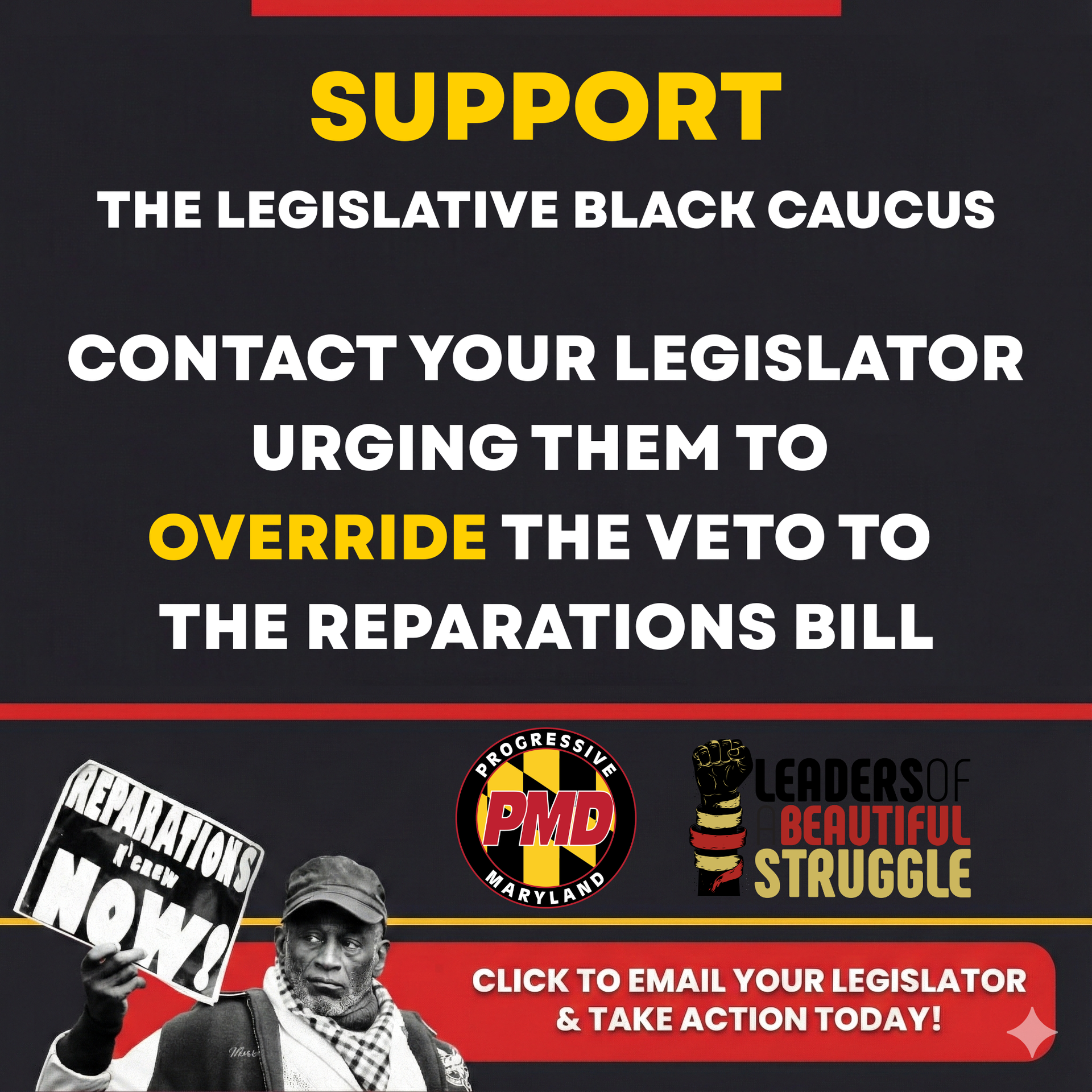 Governor Moore vetoed the Maryland Reparations Study Bill — a critical step toward developing a real, actionable plan to address the historic and ongoing harms of systemic racism faced by Black communities across our state. Overriding this veto is about moving Maryland forward with a serious strategy for reparations and long-term structural repair. Take one minute to email your legislators and urge them to override the veto and advance reparative justice in Maryland. 👉 Send your email hereSend your email here