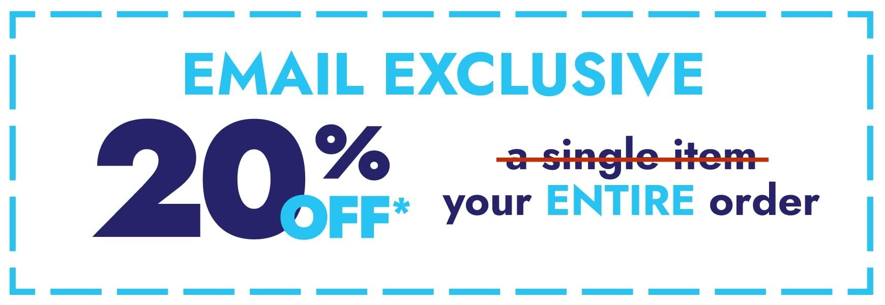 **20% off Coupon may only be used once and cannot be combined with any other offer nor past purchases. Does not apply to items in current site promotions. Total discount limited to $5,000. Purchases of gift cards, welcome rewards+ memberships, and products from the "Health & Beauty", "Sports & Toys', "Pet Supplies', "Electronics', "Books & Movies', "Office Supplies', "Cars' and "Baby' stores, "Designer Store', "Children's Clothing', "Housewares' and "Kid's Bedding' departments, "Grills & Outdoor Cooking', "Large & Small Appliances', "Cars', "Kitchen Furniture', "Shower', "Girls' Shoes', "Boys' Shoes' and "Kid's Furniture' categories, Special Sales, Minimum Advertised Priced products are not included. Discount appears at checkout. See site for details, exclusions and limitations. Offer subject to end at any time. Offer ends December 18, 2025 11:59 PM MT.