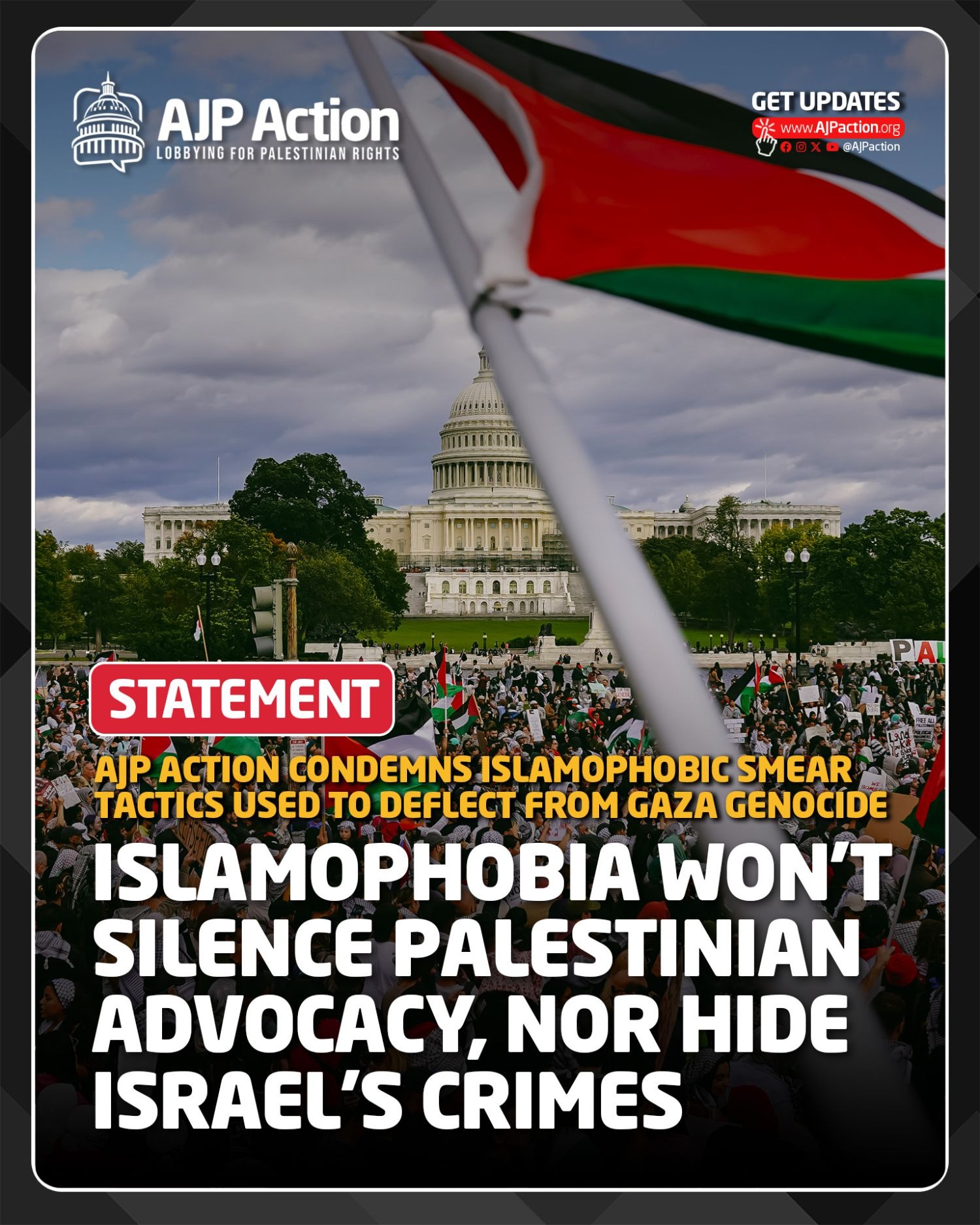 Islamophobia Won’t Silence Palestinian Advocacy, Nor Hide Israel’s Crimes [WASHINGTON D.C., DECEMBER 16, 2025] — Americans for Justice in Palestine Action (AJP Action) condemns the escalating use of Islamophobic tactics by American Zionist organizations, far-right figures, and allied lawmakers who are deliberately targeting American Muslims to deflect attention from Israel’s genocide in Gaza and its ongoing apartheid and military occupation of Palestine. Reporting by Drop Site News recently uncovered that Israel’s own Ministry of Foreign Affairs has commissioned extensive message-testing after their internal research showed that large segments of the global public now view Israel as a genocidal, apartheid state. Rather than addressing the mass killing, starvation, and genocide of Palestinians in Gaza, the research identified fearmongering about “Radical Islam” as the most effective way to blunt criticism and regain political support. This confirms what Palestinian advocates have long stated: Islamophobia is being deliberately weaponized as a public-relations shield for genocide, apartheid, and occupation. Israel and the Zionists' use of Islamophobia and criminalization of pro-Palestinian advocates is nothing-short of an admittance of guilt. Since they cannot justify their actions to the broader public, they have chosen to distract from their actions and have sought to suppress the First Amendment rights of Americans. As outrage over Israel’s war crimes grows, its defenders are increasingly pivoting to Islamophobia and the criminalization of Palestinian advocacy to avoid accountability. Recent calls by U.S. lawmakers for the mass expulsion, deportation, and collective punishment of American Muslims exemplify this dangerous turn. These remarks are overtly dehumanizing and racist; they portray Muslim communities as an internal threat rather than as citizens exercising constitutionally protected rights. AJP Action has witnessed this tactic firsthand. During AJP Action and American Muslims for Palestine (AMP)’s joint lobby day in October, far-right extremist Laura Loomer launched Islamophobic attacks against Muslim advocates engaged in constitutionally protected advocacy in Washington, D.C., seeking to delegitimize Muslim political participation and intimidate communities demanding justice for Palestine. The incident reflects a broader pattern in which Islamophobia is used to silence dissent, suppress civic engagement, and deflect accountability for Israeli state violence. Let us be clear: criticism of Israel is not about religion. It is about accountability for genocide in Gaza, illegal settlements, apartheid laws, and decades of military occupation. No amount of Islamophobic fearmongering will erase Israel’s responsibility for mass civilian death, forced displacement, and the systematic destruction of Palestinian life. AJP Action rejects the attempt to pit Jewish safety against Muslim existence, or to frame Palestinian advocacy as extremism. American Muslims, Palestinians, and their allies have the full constitutional and human right to speak, organize, and demand an end to U.S. complicity in Israel’s crimes without being smeared, surveilled, or threatened. These tactics are failing. The truth about Israel’s actions in Gaza is no longer containable, and scapegoating Muslims will not stop the growing global movement for Palestinian freedom, dignity, and self-determination. In solidarity, Americans for Justice in Palestine Action |
