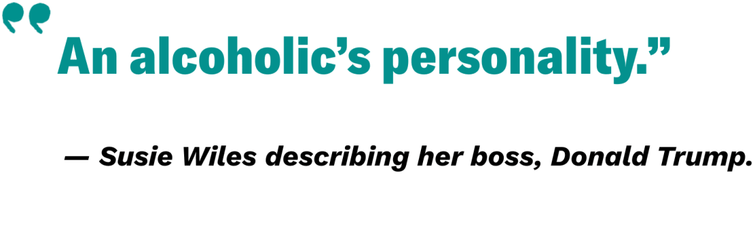 What A Day: Susie Wilin' Out“She’s never ever sloppy,” a stunned White House official told us. But this time, she was.VANITY, UNFAIR!Donald Trump’s top White House appointee just handed his critics a bonanza of dirt and damning quotes to fling back at him and his team. What was she thinking?