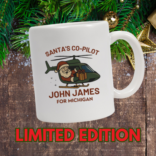 Our Santa’s Co-Pilot Mug just dropped. This Mug is guaranteed to put you in the festive spirit while supporting a Conservative Combat Veteran and his new mission.