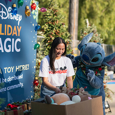 | Stitch helped Disney VoluntEARS collect and deliver toys to kids in need around the world. It's not too late to help! Donate now through 12/24. |