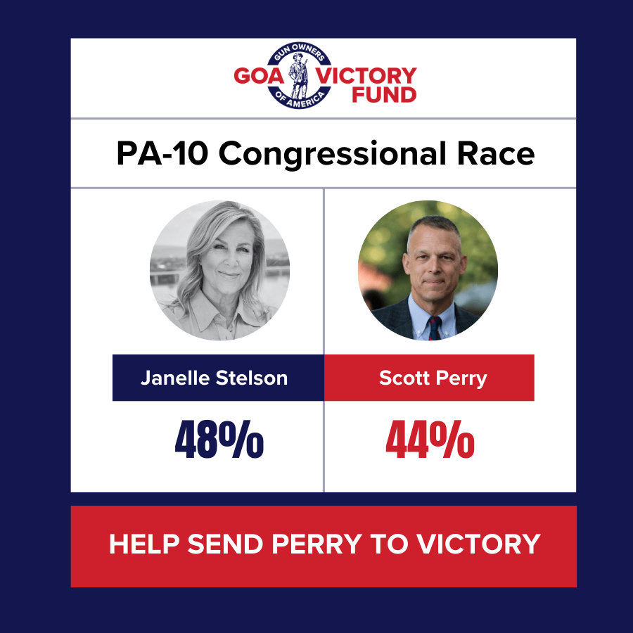 Scott Perry doesn’t just talk the talk. He fights for gun owners EVERY single day. But right now, the gun control lobby is pouring MILLIONS into Janelle Stelson’s campaign to take him down. If we lose Perry in Congress, gun grabbers in Washington will have a field day. We cannot let this happen, Patriot. GOA Victory Fund is all-in to help Scott Perry, but we need IMMEDIATE resources to cut through the Left’s noise, reach every pro-gun voter, and WIN this race. Will you rush a donation right now to defend Scott Perry and protect the Second Amendment? |