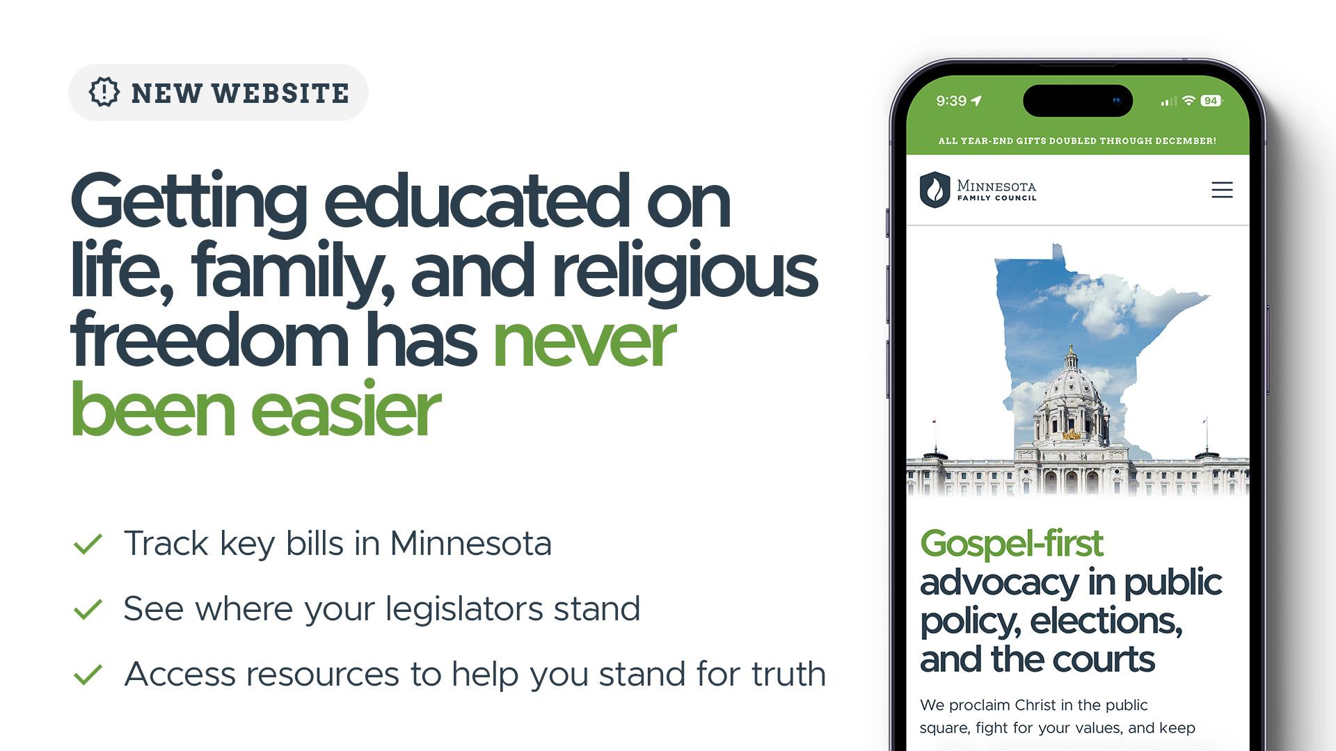 I'm thrilled to announce that Minnesota Family Council's new website is live! It has never been easier to get the facts on life, family, and religious freedom so that you can stand for truth.