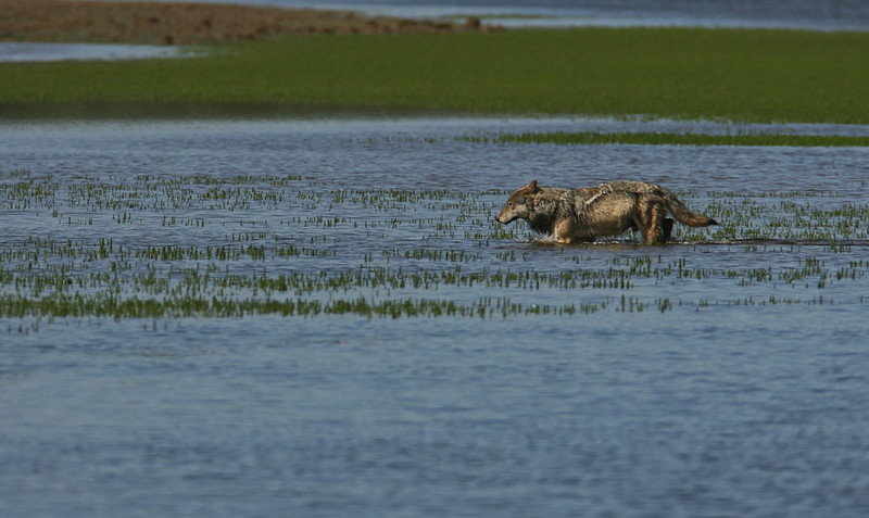 Attribution: photo by Jim Peaco: Wolf crossing Alum Creek in Hayden Valley. Yellowstone NP