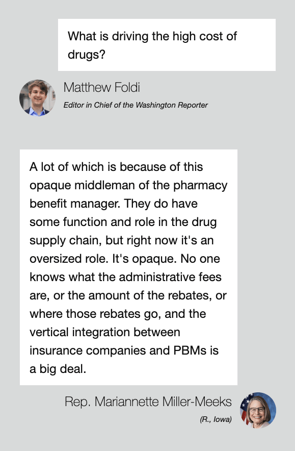 EXCLUSIVE: Sen. Marsha Blackburn on PBMs, CVS, and healthcare costsby Matthew Foldi CVS is the “largest, most vertically integrated company in healthcare,” and the federal government “has quickly become CVS’s largest funder,” Sen. Marsha Blackburn (R., Tenn.) said in a letter to CVS earlier this week, criticizing the company’s role in the prescription drug market and the PBM industry as a whole. “CVS Health, the fifth largest company in the United States by revenue, owns the second-largest pharmacy benefit manager (Caremark), the largest retail pharmacy chain (CVS), and the third-largest health insurer (Aetna), as well as other subsidiaries that extend into drug manufacturing and rebate aggregation,” Blackburn said. Today, Blackburn gave the Washington Reporter more context on her work to increase transparency in the prescription drug market. “The federal government has quickly become CVS’ biggest funder, and CVS has forced Americans to foot the bill for higher health insurance premiums, fraud, overbilling, unsafe practices, and regulatory violations,” she told the Reporter. A message from our sponsor.