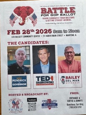 The Illinois Republican Party welcomes event submissions from Republican candidates. Please note that the State Party does not make endorsements in contested open primaries. The publication or promotion of any event does not imply endorsement.