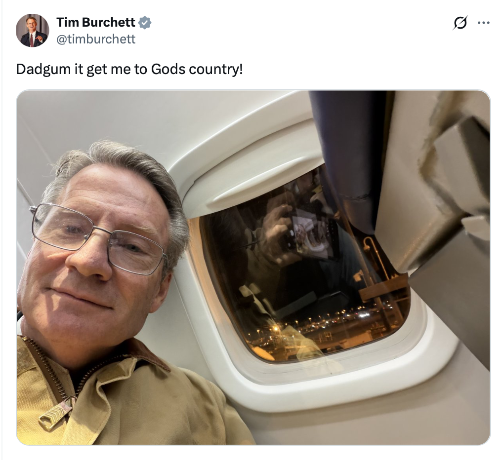JOHN, The words of Morgan Wallen really spoke to me as I left D.C. last night—get me to God’s country. |