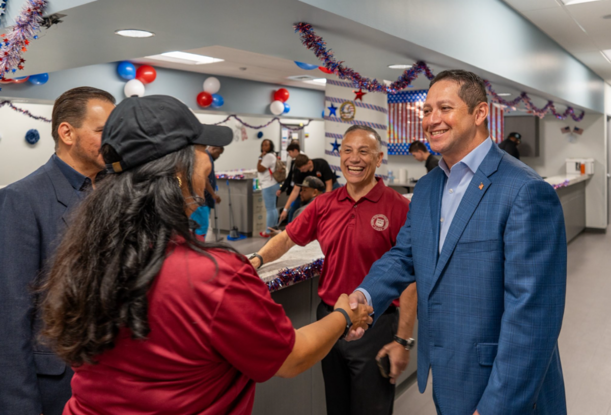 | | PICTURED: Congressman Gonzales meeting a Marfa School Resource Officer. | | |