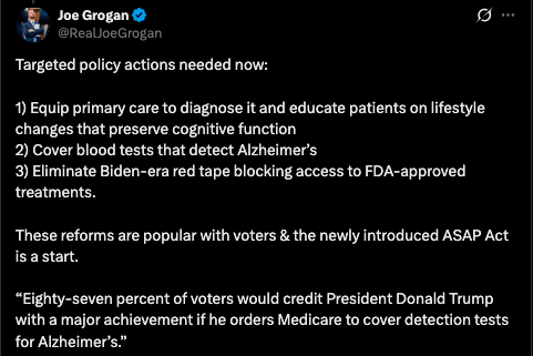 China understands the economic danger of Alzheimer’s and has launched a national plan to address it. The U.S. has a chance to prevent its own fiscal disaster if policymakers take important steps to keep our elderly healthy longer. Grogan and Long outline exactly what a brighter fiscal future would require: empowering primary care physicians to spot cognitive decline early and guide patients toward lifestyle changes that preserve brain health; ensuring Medicare covers the new generation of blood tests that can detect Alzheimer’s years before symptoms appear; and slashing the Biden-era red tape that limits access to FDA-approved treatments. The newly introduced ASAP Act makes progress by authorizing the Health and Human Services Secretary to order Medicare to cover these blood tests. According to recent polling, 87% of voters would credit President Donald Trump with a major achievement if he waged the war on Alzheimer’s, underscoring both the policy and political upside of leading on this issue. Lifestyle interventions are an important part of this strategy. Walking between 5,000 and 7,000 steps a day has been shown to delay Alzheimer’s decline by an average of seven years. Smart policy decisions today could translate into millions of lengthened, healthy lives that strengthen the U.S. economy, all while giving families more meaningful time with their loved ones. The alternative is grim: inaction will allow Alzheimer’s to accelerate U.S. fiscal instability. China has already launched a national plan to address cognitive decline. The United States must act quickly to do the same. Charles Sauer is the president of the Market Institute, and the author of Profit Motive: What Drives the Things We Do. The Capitalist is a reader-supported publicationReject Corporate Left Wing JournalismYou're currently a free subscriber to The Capitalist. For the full experience, upgrade your subscription. |