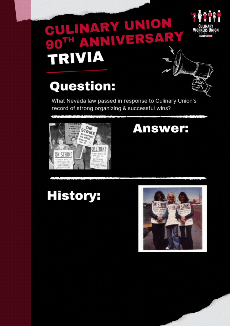 Play our trivia each week on social media to learn more about the Culinary Union's history of fighting & winning a better life for hospitality workers.