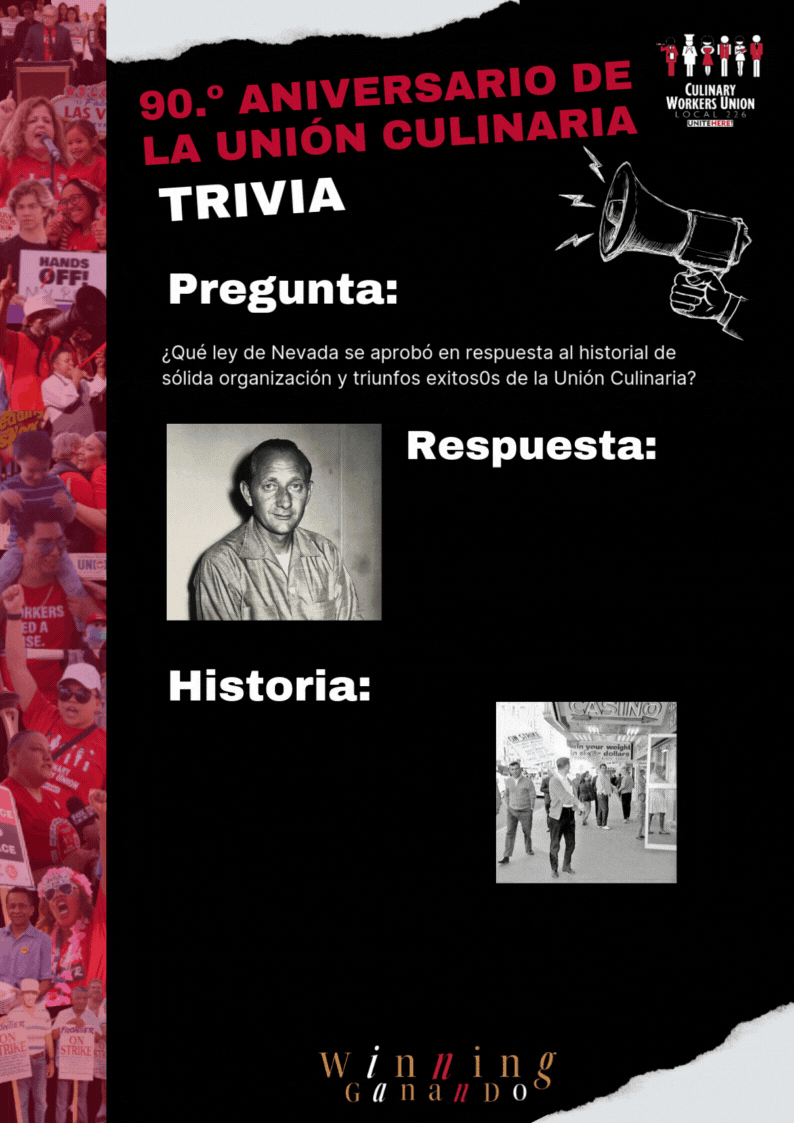 Juega a nuestra trivia cada semana en redes sociales para descubrir m谩s sobre la historia de la Uni贸n Culinaria que ha luchado por una vida mejor para los trabajadores de la hosteler铆a.