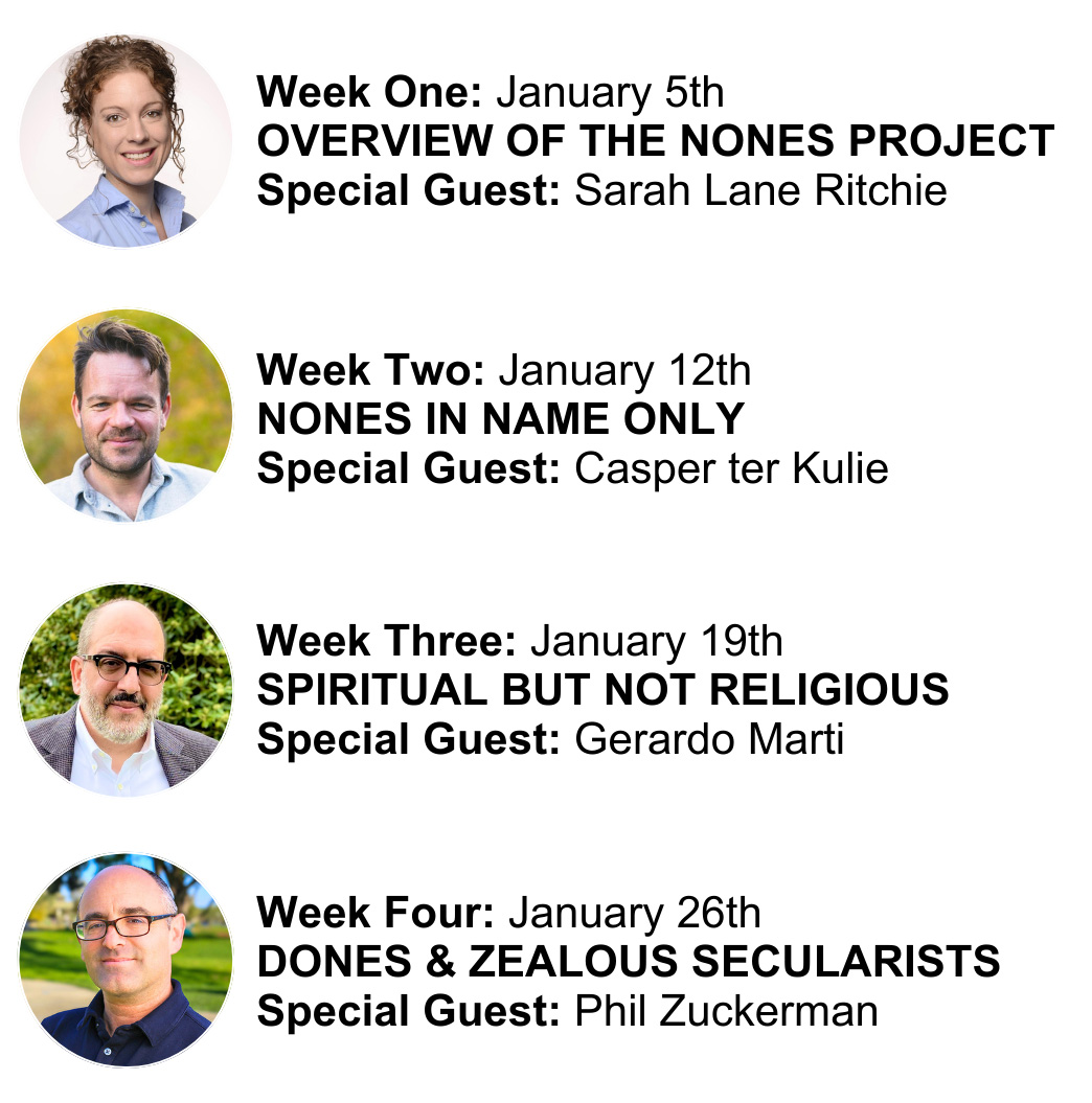 In this four-week online class starting in January, we'll explore the NiNos (Nones in Name Only) who pray daily but don't affiliate (these are the ones we might actually reach), the Spiritual But Not Religious who claim transcendence but — when researchers drilled into their actual practices — turn out to be only aspirationally spiritual, the Dones who have genuinely moved on and don't miss God at all (challenging Pascal's famous thesis about the "God-shaped hole"), and the Zealous Atheists who are young, vocal, and — here's the pastoral heartbreak — struggling with meaning and hope more than anyone else in the study.