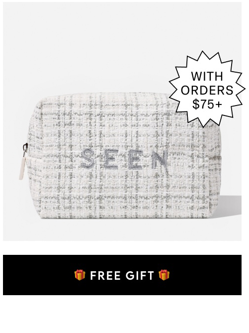 Terms & Conditions: Free SEEN Shimmer Holiday Pouch automatically added to all orders $75+ on