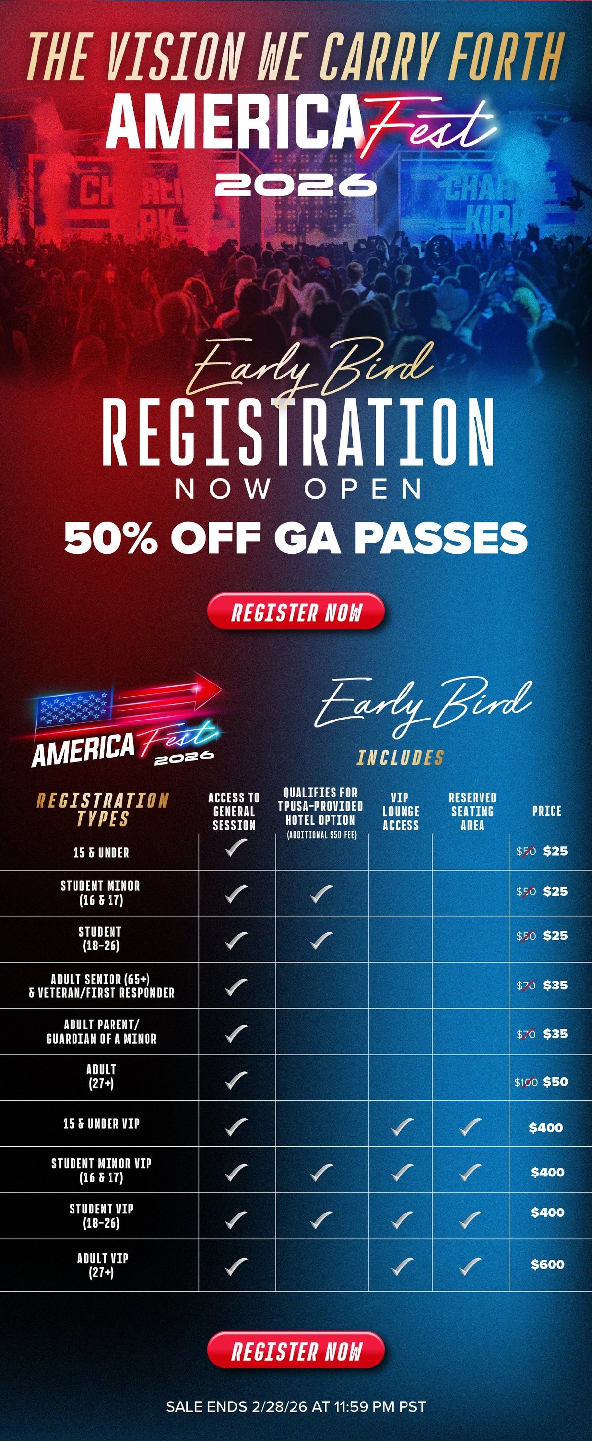Get 50% OFF GA passes. Secure your AmericaFest 2026 Early Bird pass before prices double.
