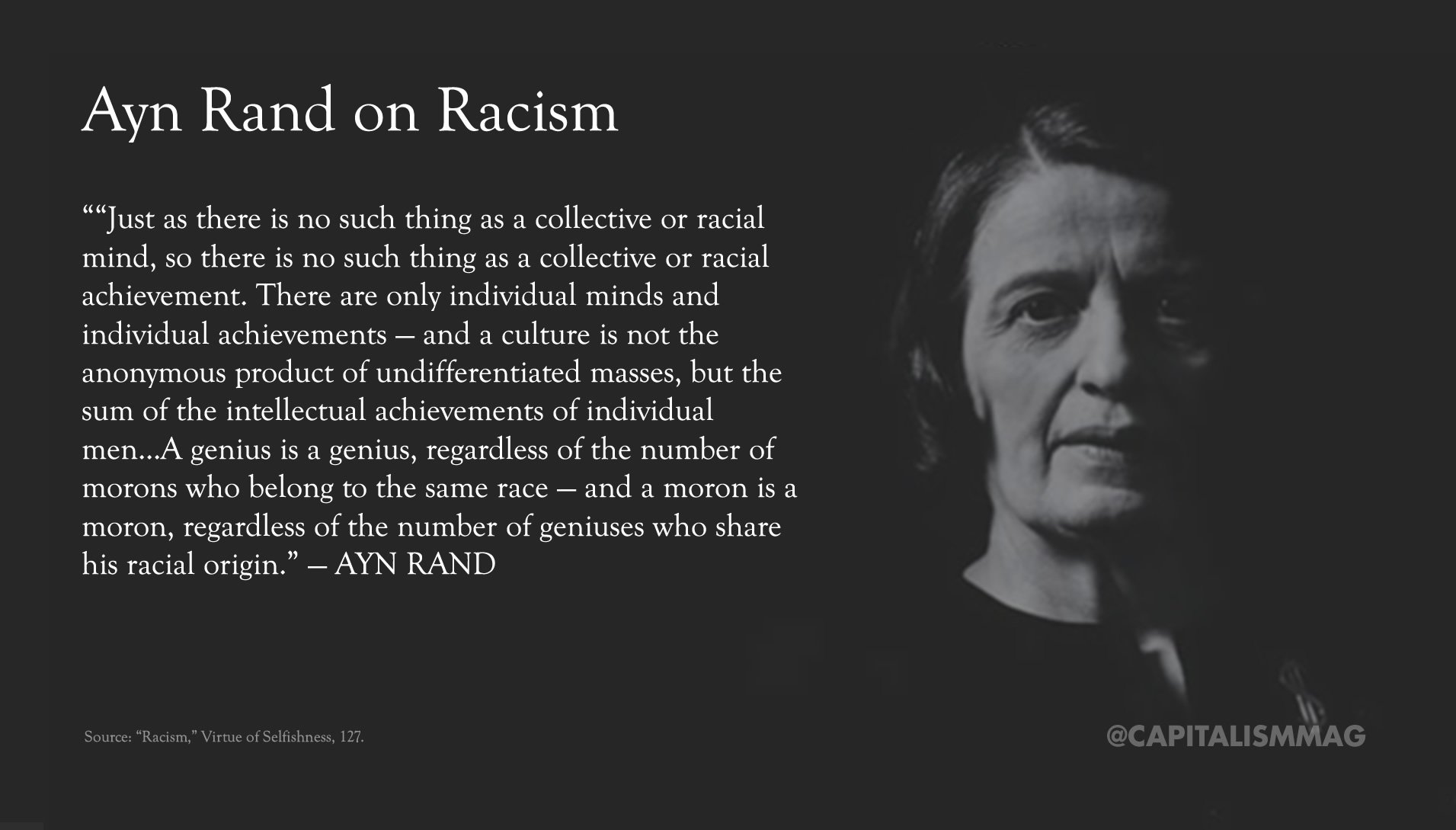 Capitalism is the social system of the Enlightenment, founded on a philosophy based on reason, egoism, and freedom. Central to a proper concept of capitalism is reverence for the power of reason and the human mind. It is this power that allows us to harness the power of the atom for energy, build planes and rocketships to travel the skies and stars, and innovate technology to increase the quantity and improve the quality of our lives.