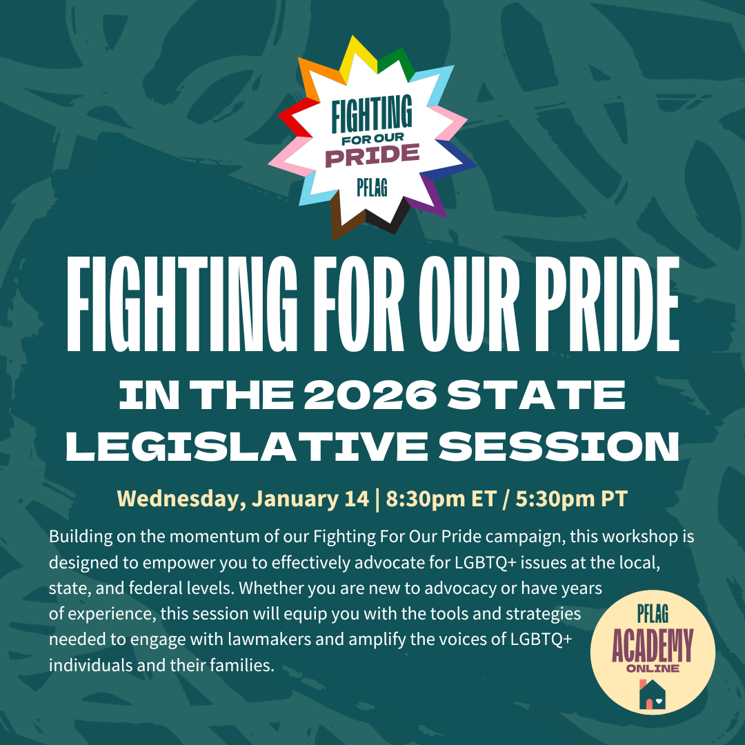 2025 has been one of the most challenging and difficult years for LGBTQ+ people since PFLAG’s inception. From legislative attacks on transgender youth to rollbacks of hard-won protections, the community and our families have been tested in ways we haven’t seen in generations. And here’s another unfortunate reality: As a direct result of anti-DEIA efforts from the Trump administration, we saw a massive decrease in funding from our philanthropic partners, leaving us with a $1.3 million gap in our budget. The challenges we face aren’t going away, but with your support, neither will we. We will continue showing up, creating caring, just, and affirming communities and families across the country. Your tax-deductible gift—whether it’s $25, $100, or whatever feels right for you—ensures we have the resources to keep going at a time when the stakes have never been higher. Will you join us? Together we’re stronger than any challenge we face and we’ll continue the fight in 2026 and beyond with your support and commitment. Give today! |