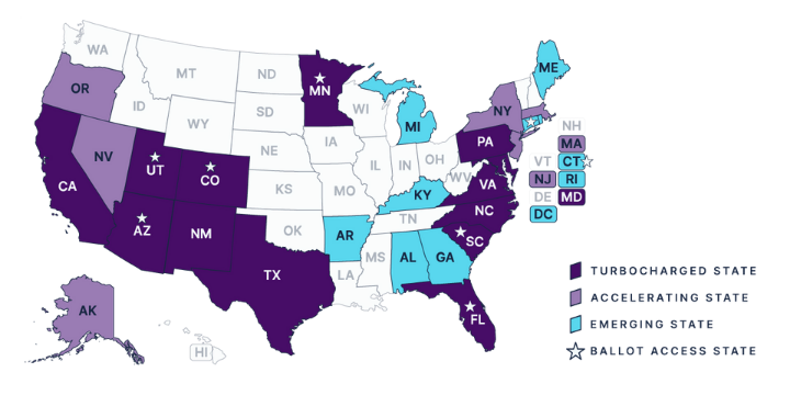 Colorado, Connecticut, Florida, South Carolina, Utah, and Minnesota,