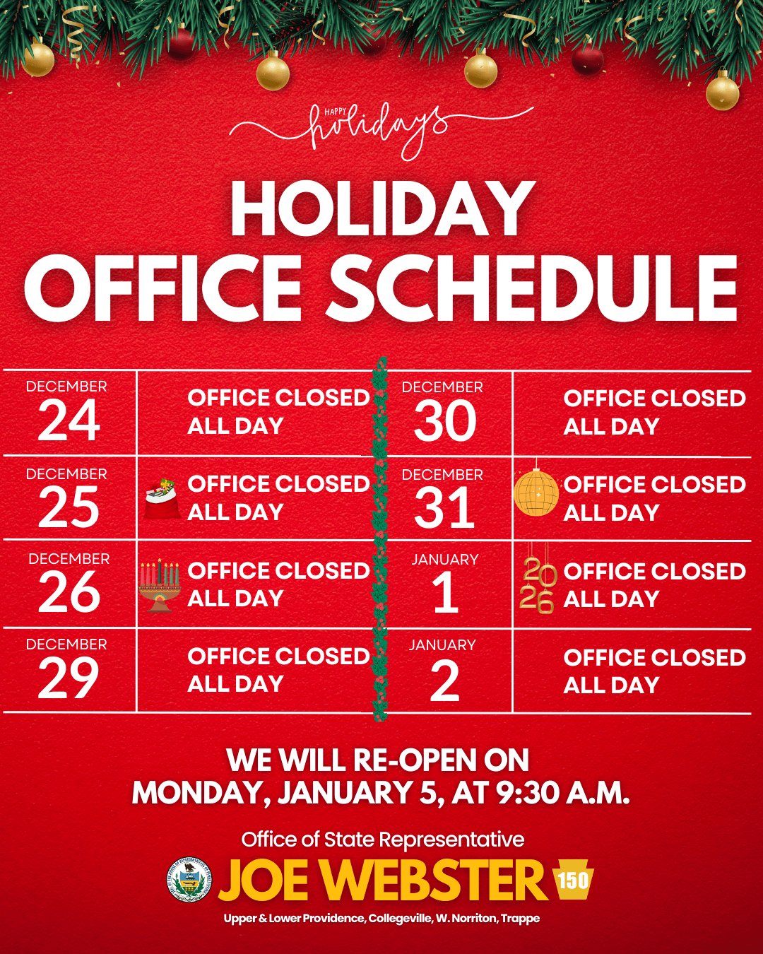 Please continue to stay safe, healthy, and well-informed. And, if you have questions about any state-related issue, please contact my office at 484-200-8263 or email [email protected]