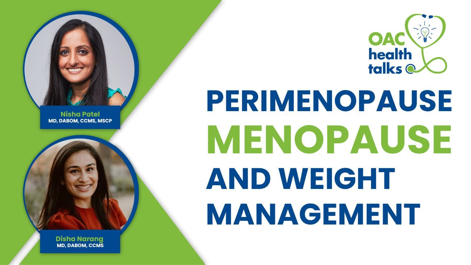 Are you navigating perimenopause or menopause and noticing changes in your weight or overall wellness? OAC’s Health Talk Perimenopause, Menopause and Weight Management breaks down the hormonal changes happening in your body and explores how they can affect weight, metabolism and overall health. You will also learn practical strategies to manage these changes with knowledge and care. Don’t miss this discussion for anyone experiencing these transitions or supporting someone who is.