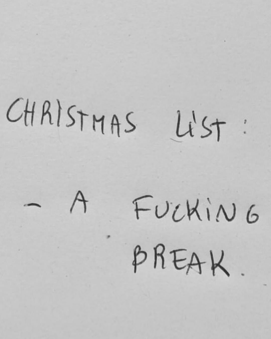 All I want for Christmas is a fucking break from this fascist hell. That's it. That's the list. 🙃