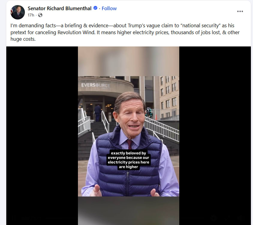 Goldstein For Congress - Please Subscribe and also visit us at www.goldsteinforcongress.com Offshore Windmills - The Green Energy that Turns Your Bank Account RedThe Revolution is over for Revolution Wind - Just another Quixotic Windmill(Modern Day Don Quixote’s Chasing Green Windmills for fantasy savings) Governor Lamont, Attorney General Tong and their herd of green energy fanatics have engaged in a process of destroying local government under the guise of making housing more affordable under HB8002. Thanks to a Progressive Democrat Governor and the Democrat Supermajority at the Statehouse, they have rammed this possibly unconstitutional bill through the State Legislature. But if they were truly interested in affordable housing and economic growth the last thing they should be supporting is unaffordable electric rates. If you look at the prices of your electric bill and you aren’t shocked - LOOK AGAIN. Connecticut’s electric rates that are among the highest in the nation. Windmills will only increase those rates if we are forced to use offshore wind generated electricity. Affordability is on the agenda (especially in winter months) and there is a sharp demand for affordable electricity for power data centers, AI, quantum computing and bitcoin mining. These important growth industries also need water to cool the heat they generate and cheap and require abundant electricity to power them. Connecticut has the water, but Governor Lamont is making sure that we don’t have the cheap electricity to power them and there are others on the Federal Level like Sen. Blumenthal that claim that this offshore wind from Revolution Wind will bring costs down. Under the Lamont and Tong Regime, Connecticut will NEVER be able to attract these industries to locate here. Pull out your Electricity Bill - Here is a Primer With A Generic Bill More Pain at the Plug The first column on your bill is “Supply”. This is the cost paid to Eversource to generate the electricity and it is 9.748 cents per KWH. At that price Eversource is making a profit on selling the customer electricity. Millstone, our nuclear power plant supplies electricity at 4.999 cents per KWH and that is a fixed price for the next 20 years. Yet, all the Democrat legislators blame Millstone for our high electricity costs. Without Millstone our electricity would be less green and more expensive. Building new nuclear power plants are expensive, but they are coming down with new technology and a modernized regulatory framework. Once operational, nuclear plants can now produce electricity at a lower cost than fossil fuels at 2-4 cents per KWH. Offshore Platform Wind generated electricity is an Economic Disaster. According to the November, 2024 report of the National Renewable Energy Laboratory, the cost of Offshore Platform Generated Electricity is 18.1 cents per KWH or 13 cents more per KWH than Millstone. Land Based Wind Generated Electricity costs are 4.2 cents per KWH. We in Connecticut have made the wrong choice, for wind based generation of electricity. This does not include any potential damage and repairs that a massive hurricane or nor-easter could cause. President Trump was right to shut this down. Based on the latest Eversource bill, the average cost per KWH with all the components of the bill hovered around 26.74 cents per kwh. If 25% of our electricity came from offshore wind without a mark up by Eversource our electricity bill would increase by 12.4% and with a mark up it could be as high as 20%. NYC is pushing for full green buildings and the removal of any heat from fossil fuels in their latest laws that require all HVAC and hot water by electricity. Combining that retrofit the wind generated electricity surcharge, most New Yorkers could have monthly energy costs that exceed monthly mortgage payments. Offshore wind and other green energy policies of the progressive left will destroy the economy of Connecticut. There are rational green energy policies that can stimulate economic growth, keep our carbon footprint down, and bring prosperity to Connecticut. One of those is increased nuclear. The more you know about Offshore Wind Generated Electricity the less you want it. There is a reason that Offshore Wind has been suspended for national security reasons and many others as these projects do not make CT more affordable. Attorney General Tong should drop his lawsuit and let us cut our losses. The real green energy revolution is Nuclear. Please Share and Subscribe - We need mote Sensible Energy Revolutionaries - Not Revolution Wind. The Goldstein Substack is free today. But if you enjoyed this post, you can tell The Goldstein Substack that their writing is valuable by pledging a future subscription. You won't be charged unless they enable payments. |