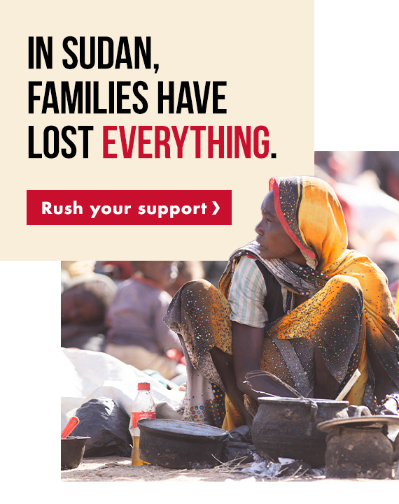 Camps for internally displaced people have become the epicenter of the crisis. In Greater Darfur, Greater Kordofan, and Khartoum, people are trapped in overcrowded conditions with dwindling access to food, clean water, medical care, and safe shelter. As malnutrition soars, the health system fails, and sanitation remains poor, disease outbreaks are spreading. And with over 70% of hospitals out of service, millions are cut off from basic medical care. The war has devastated agriculture, which is crucial to Sudan's economy and the main support for rural families. Violence, insecurity, and landmines have forced farmers to abandon their fields — and the war’s economic shock will devastate an entire generation. Don’t wait to send your support for families living on the edge of survival in Sudan and other crisis zones across the globe. Donate to our Matching Gift Challenge and multiply your impact for those who need it most ▸