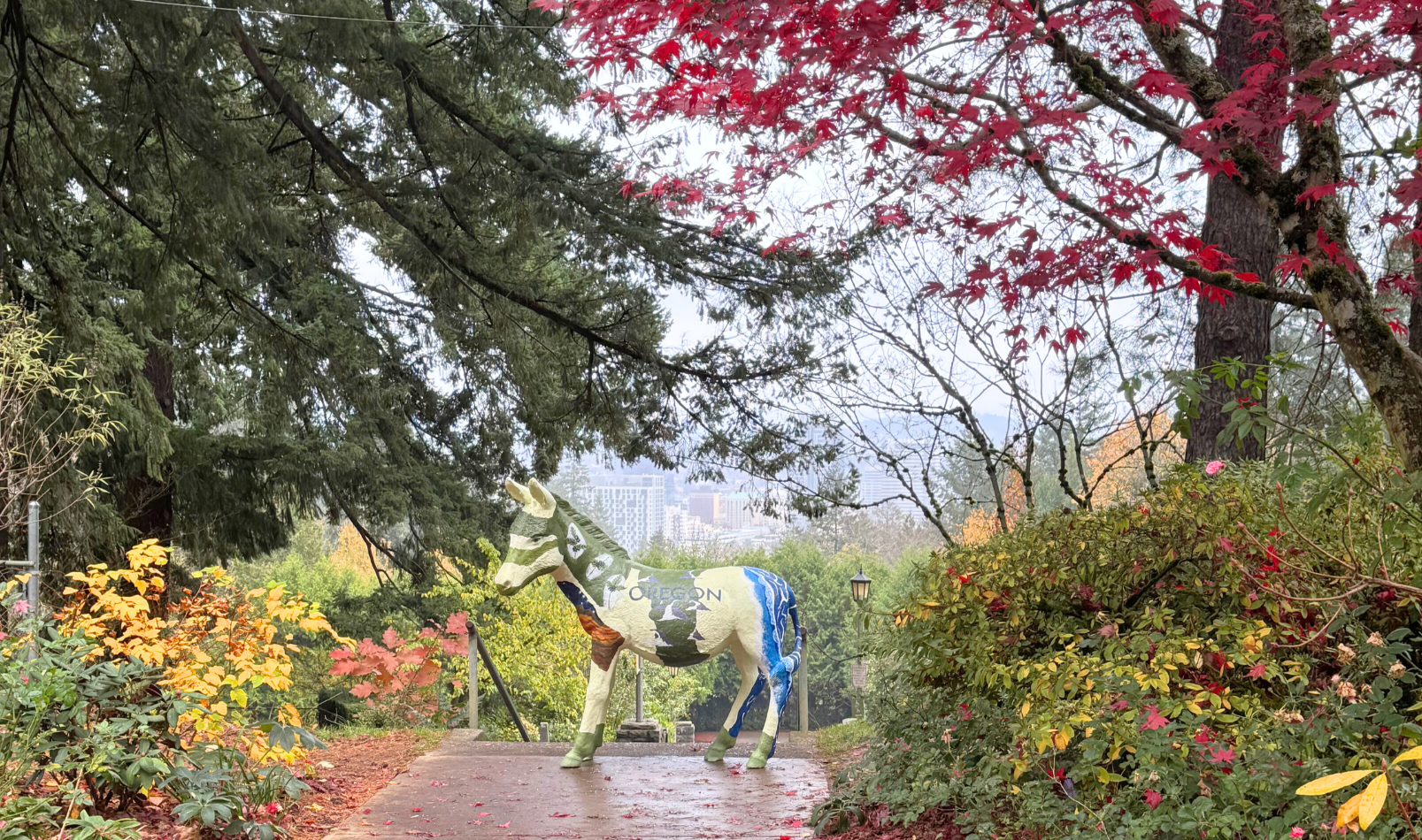 P.S. Sitka the Donkey, named for the Sitka Spruce, was a gift commissioned by the Democratic National Committee. She features art inspired by Oregon plants, landmarks, and landscapes. This year's photo of Sitka was taken at the International Rose Garden in Portland. |