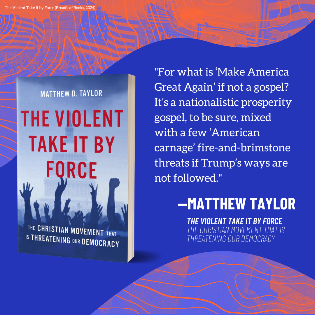 “For what is 'Make America Great Again' if not a gospel? It’s a nationalistic prosperity gospel, to be sure, mixed with a few 'American carnage' fire-and-brimstone threats if Trump’s ways are not followed,” says Matthew Taylor in the excerpt from his book The Violent Take it by Force.