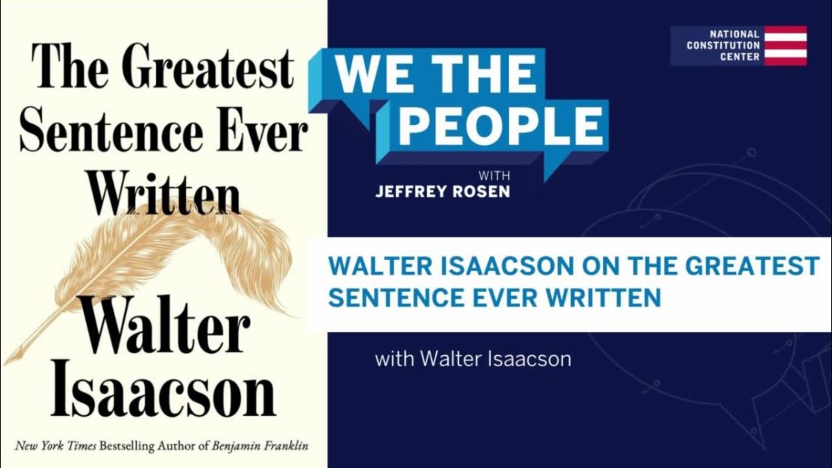 Best-selling biographer Walter Isaacson discusses his new book, The Greatest Sentence Ever Written, with Jeffrey Rosen, president and CEO of the National Constitution Center. As we approach the 250th anniversary of the country’s founding, Isaacson explores the intellectual inspirations and drafting history of the Declaration’s famous second sentence, which lays the foundation for the American dream and defines the common ground we share as a nation. Listen now