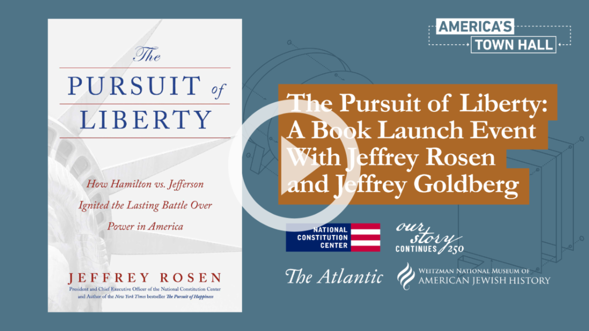 National Constitution Center President and CEO Jeffrey Rosen and The Atlantic Editor-in-Chief Jeffrey Goldberg discuss Rosen’s new book, The Pursuit of Liberty: How Hamilton vs. Jefferson Ignited the Lasting Battle Over Power in America. The book explores how the opposing constitutional visions of Thomas Jefferson and Alexander Hamilton have defined the nation since its founding, shaped presidents from Washington to Trump, and continued to drive today’s debates over government power. Watch now