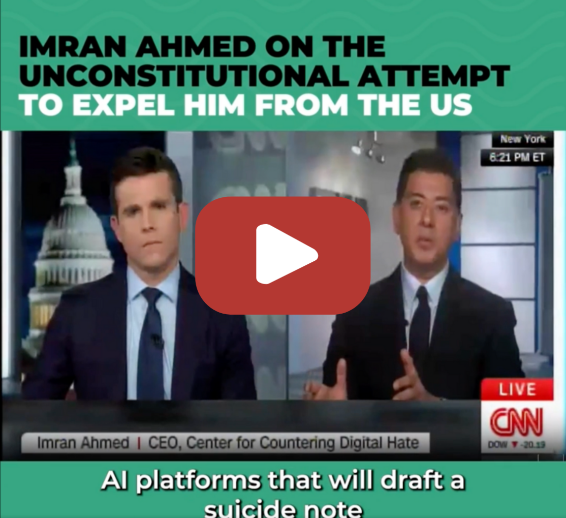 Friend, Our mission is under attack. The U.S. State Department is threatening our CEO, Imran Ahmed with deportation because of CCDH’s work exposing how social media giants harm kids online and fuel antisemitism. It’s an unconstitutional assault on free speech. Our mission pits us against tech bosses, like Elon Musk, who is now publicly celebrating Imran being targeted. Watch Imran’s interview with CNN: