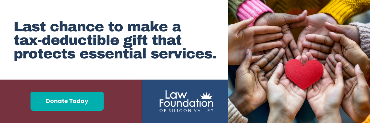 This is your last chance to make a year-end gift to the Law Foundation of Silicon Valley. We are still working to close the gap caused by funding cuts and rising demand for our services.