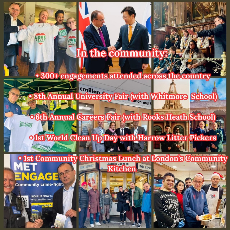Beyond Harrow, I attended over 300 engagements across the country. This included hosting my 8th annual University Fair with Whitmore High School, my 6th annual Careers Fair with Rooks Heath, my first World Clean Up Day with Harrow Litter Pickers, and my first annual Christmas lunch at London’s Community Kitchen. These events are about opportunity, pride in place, and bringing together friends, neighbours and residents.
