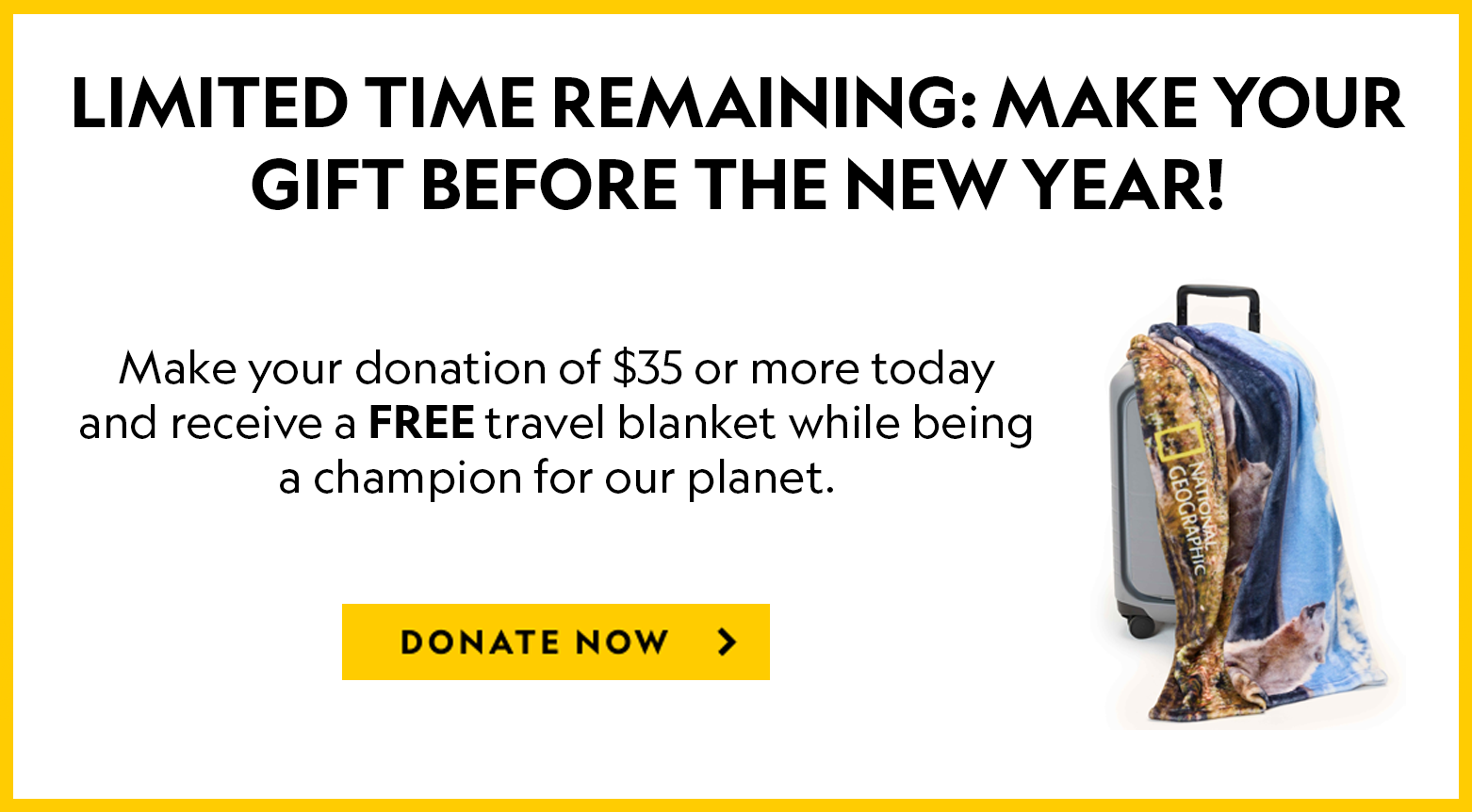PS: Don’t miss your opportunity to receive a FREE National Geographic Society travel blanket with your donation of $35 or more before midnight tonight. Limited stock is remaining, so please make your donation today! |