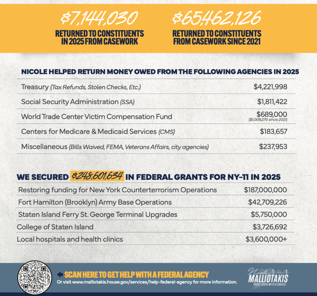 ✅ Recovered more than $7 million owed to constituents from government agencies