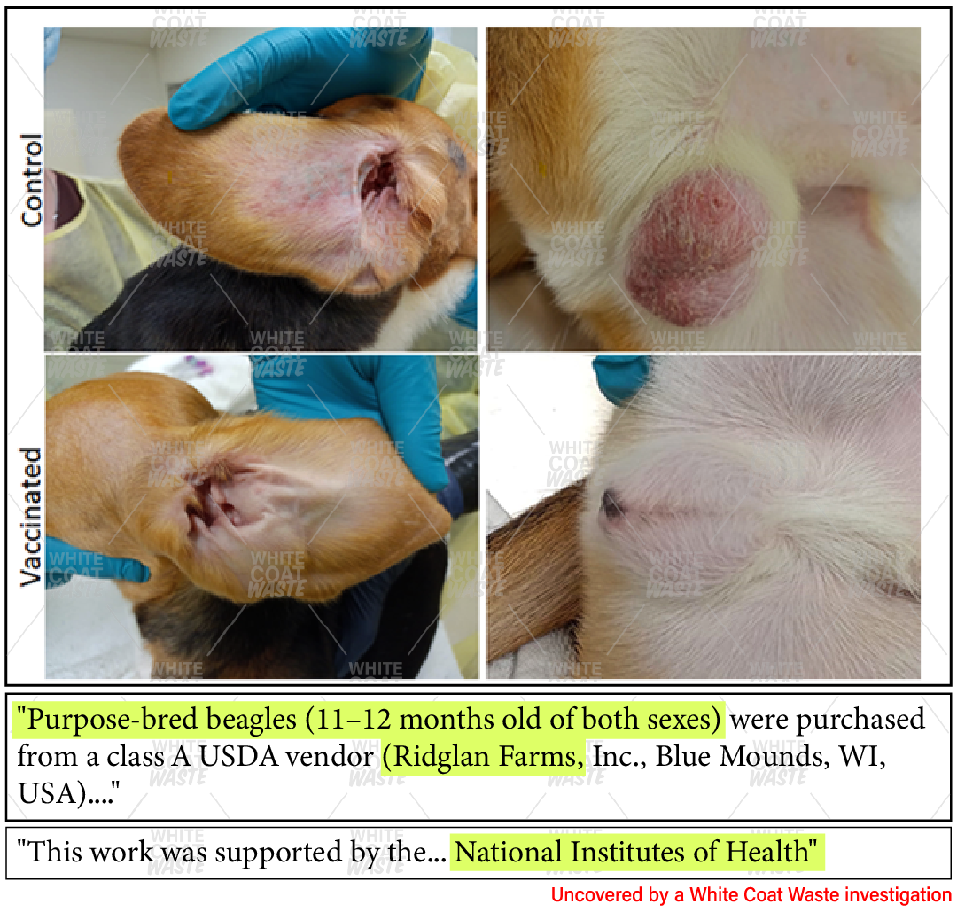 Records obtained by WCW show the lab just acquired two more beagles from Ridglan Farms — the notorious puppy mill. Inset: another victim of the lab.