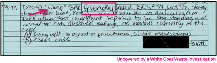 Puppies listed as “nervous” and “timid” during exams.