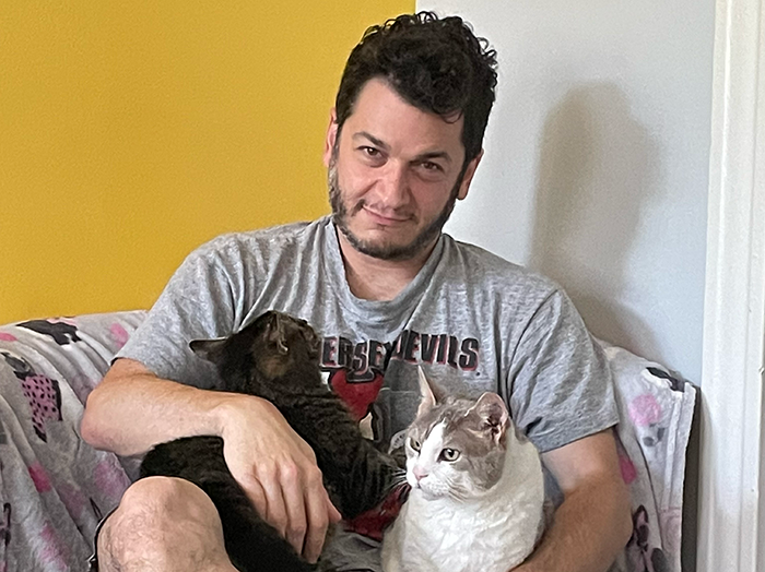 Me with Petite (brown tabby, govt ID #15KEY5) and Delilah (gray & white, govt ID #87). I adopted them after WCW shut down the U.S. government’s largest cat lab. 6,635 perished — until we won the campaign.