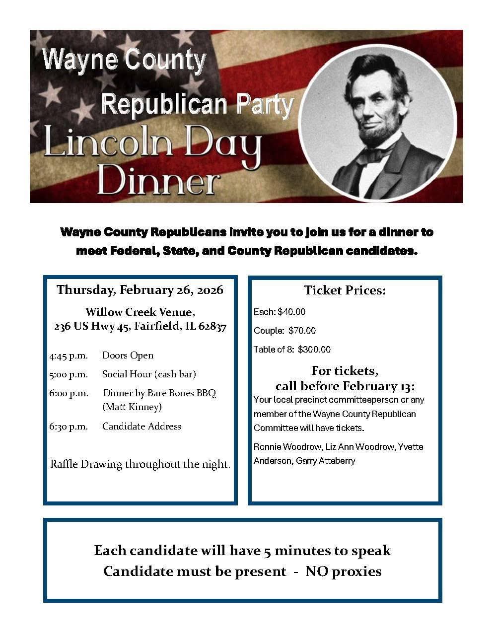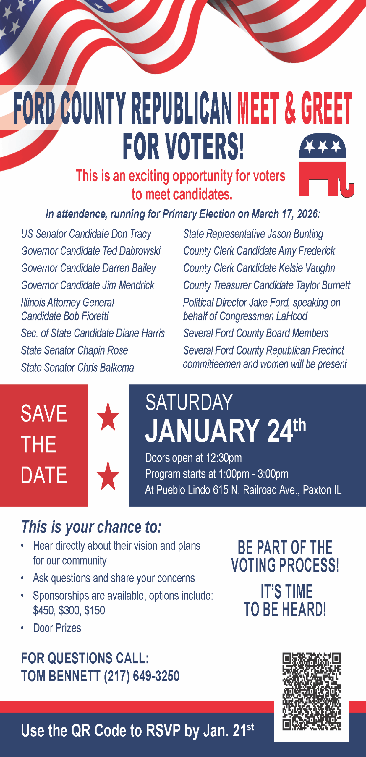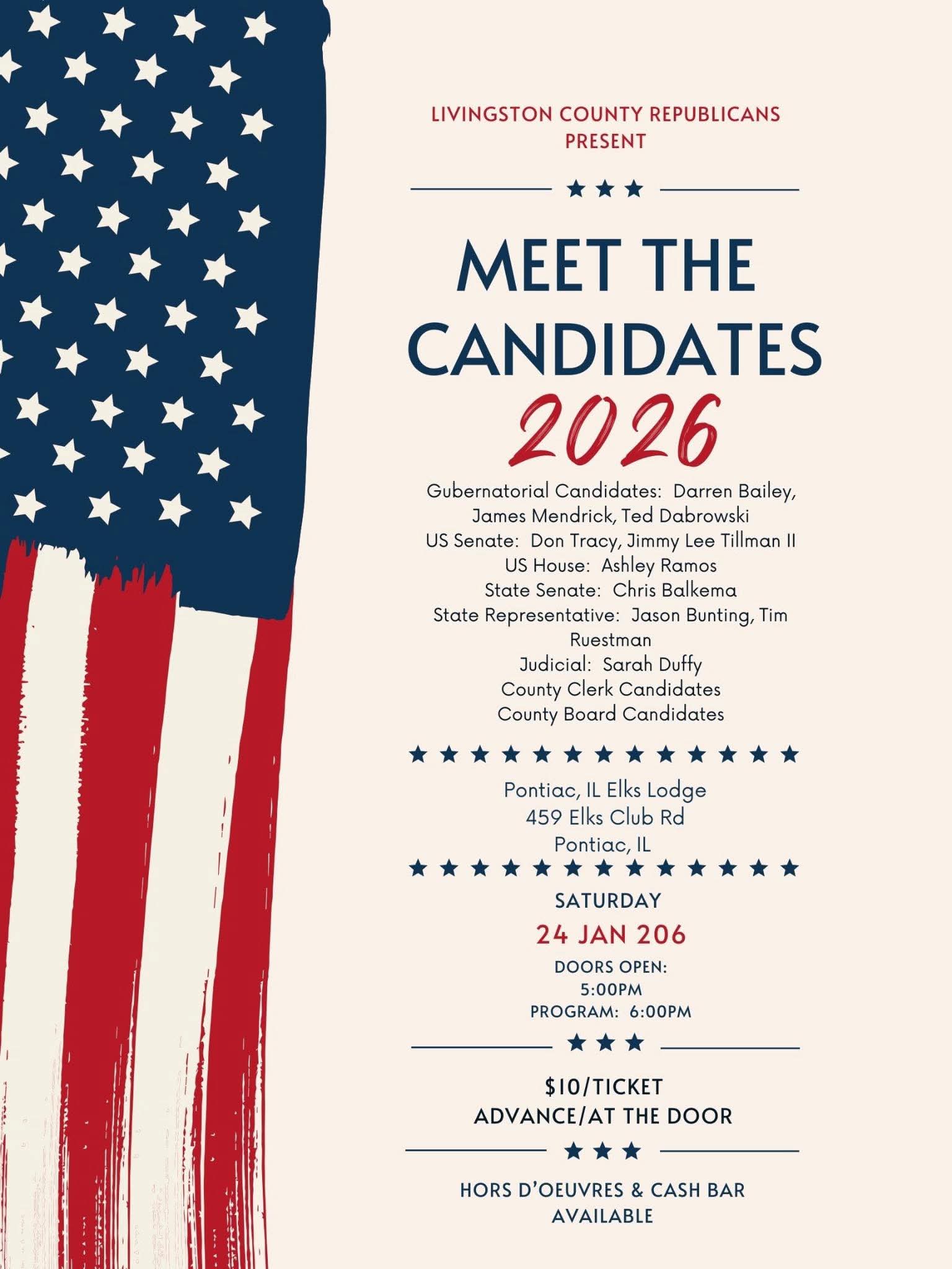 The Illinois Republican Party welcomes event submissions from Republican candidates. Please note that the State Party does not make endorsements in contested open primaries. The publication or promotion of any event does not imply endorsement.