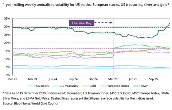 Gold Council, we find that gold???s volatility is up from a low base and is broadly